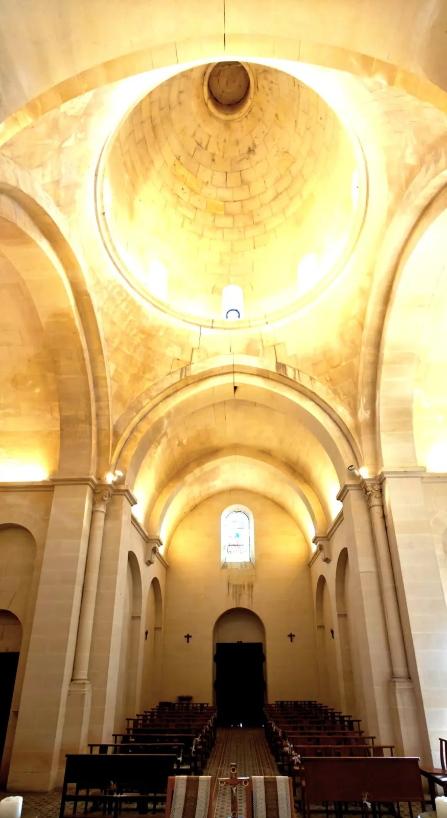 Style architectural :Néo-roman / néo-provençal, plan centré avec coupole à la croisée du transept et un charmant clocher à pans coupés.